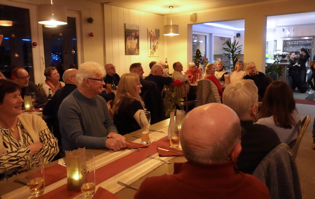 Wie die große Teilnehmerzahl an der Weihnachtsfeier bewies, war dies ein Volltreffer. Jörg Heger sprach einige launige einführende Worte und wurde später, wie einige andere, für sein Engagement im Verein mit einer kleinen Anerkennung belohnt (siehe Foto). Ein sehr gelungener Abend, den wir nicht hätten missen wollen.